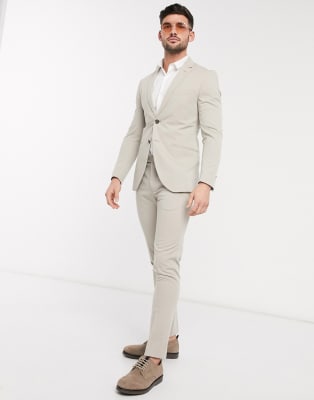 Jack & Jones Premium – Stenfärgad stretchig kostym av återvunnen polyester med supersmal passform