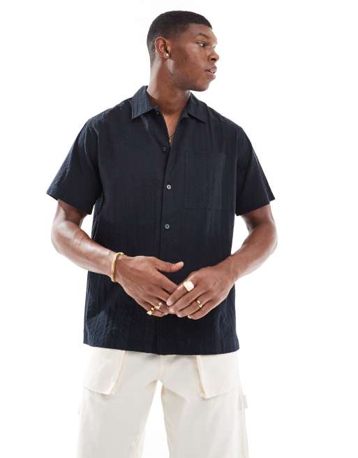 Jack & Jones – Premium – Svart skjorta i bäckebölja