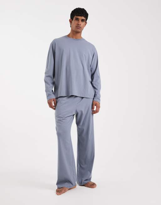 Jack & Jones – Stålgrå pyjamas med långa ärmar