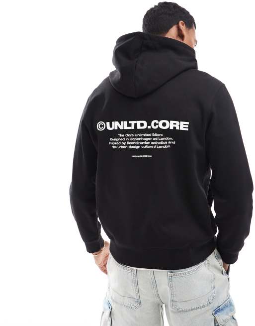 Jack & Jones – Svart huvtröja i oversize med "Core"-tryck baktill