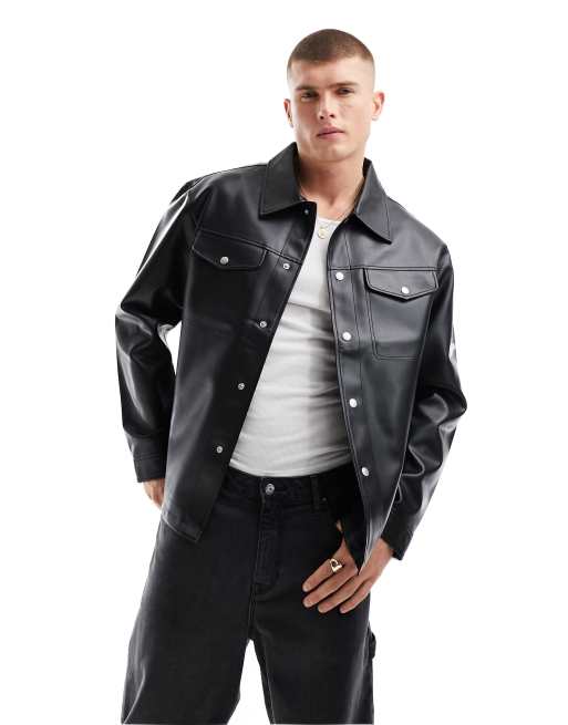 Jack & Jones – Svart overshirt i läderimitation