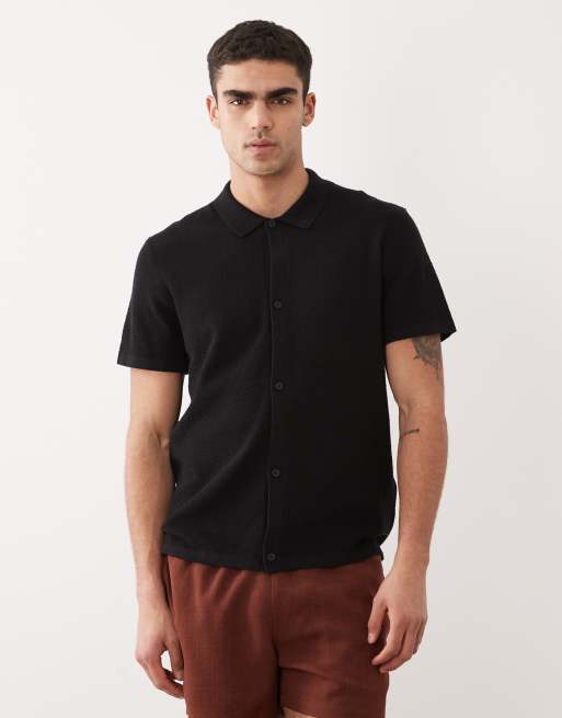 Jack & Jones – Svart, stickad skjorta med korta ärmar