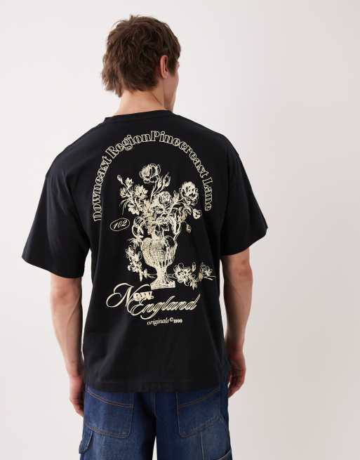 Jack & Jones – Svart t-shirt i oversize med blomtryck baktill