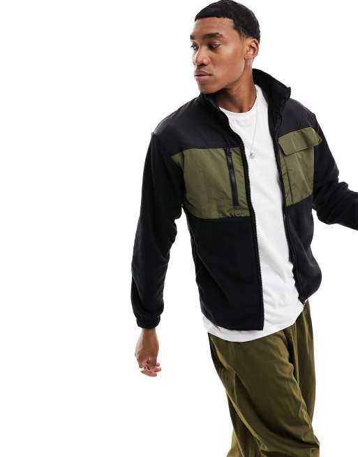 Jack & Jones – Svart, teknisk fleecejacka med cargofickor