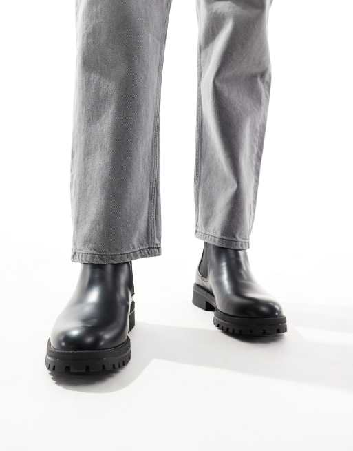 Jack & Jones – Svarta, grova chelseaboots i lläderimitation