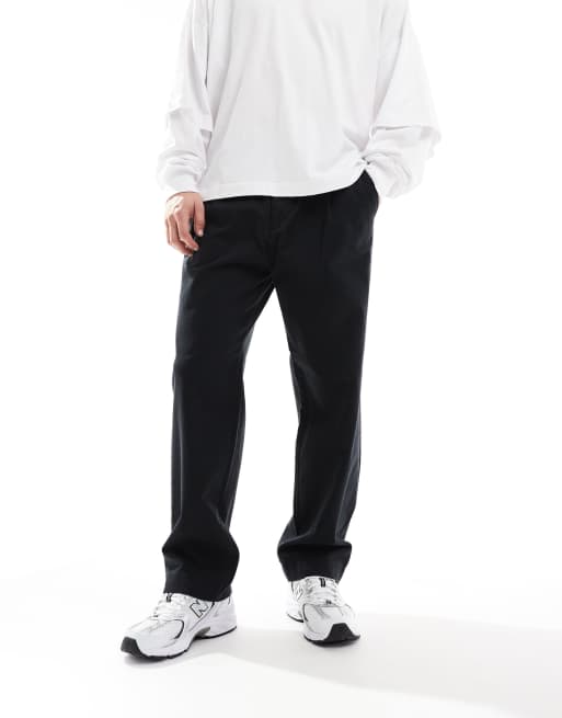 Jack & Jones – Svarta, lediga chinos med veck framtill i dra på-stil