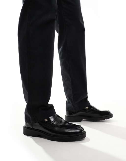 Jack & Jones – Svarta penny-loafers med grov sula