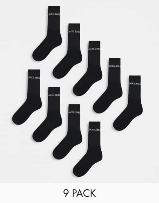 Jack & Jones – Svarta, ribbade strumpor med logga, 9-pack