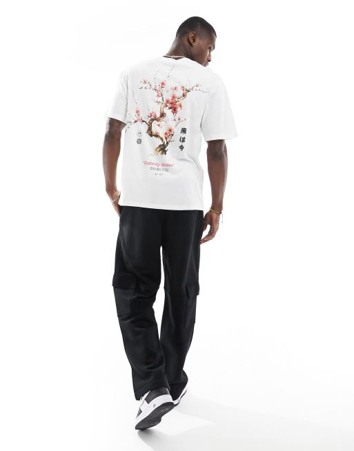 Jack & Jones – Vit t-shirt i oversize med körsbärstryck baktill