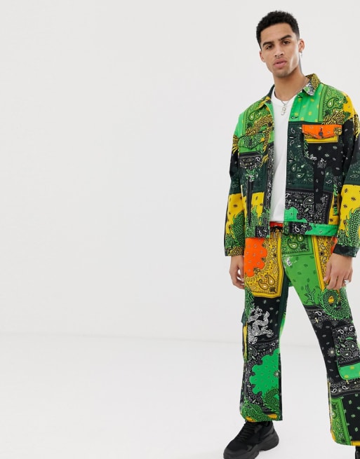 Jaded London – Grönt och gult set med drakmönster i paisleystil