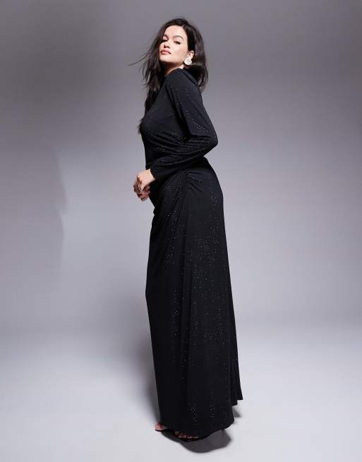 Jaded Rose Plus – Svart maxiklänning med långa ärmar och strass