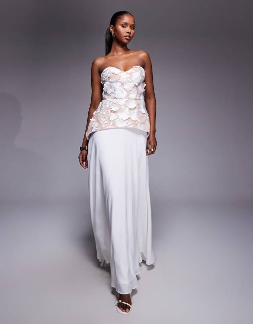Jarlo – Kay – Benvit maxiklänning med bustier i spets