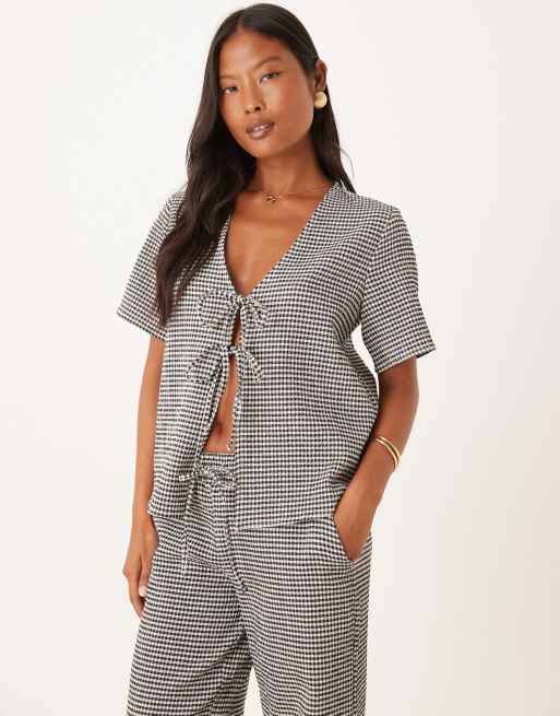 JDY Petite – Svart, ginghamrutig topp i bäckebölja med knytband framtill, del av set