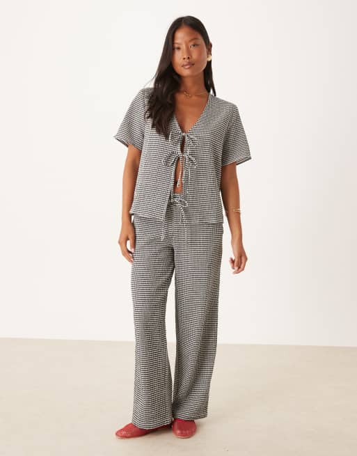 JDY Petite – Svarta, ginghamrutiga byxor i bäckebölja med vida ben, del av set