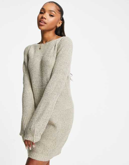 JDY – Beige, stickad tröjklänning i minimodell med vid hals
