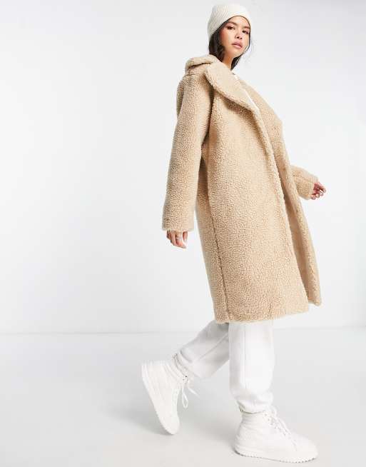 JDY – Beige teddykappa i lång modell