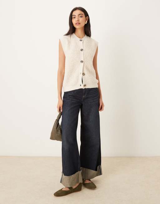 JDY – Gräddvit, fluffig, stickad väst med knappar