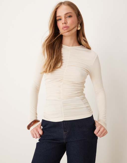 JDY – Gräddvit topp med rysch framtill