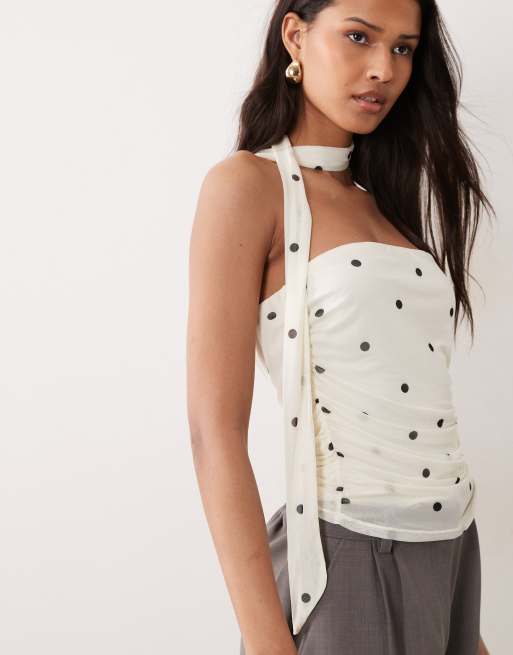 JDY – Krämvit, prickig bandeau-topp med scarf