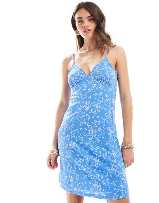 JDY – Ljusblå, blommig, a-linjeformad klänning med smala axelband