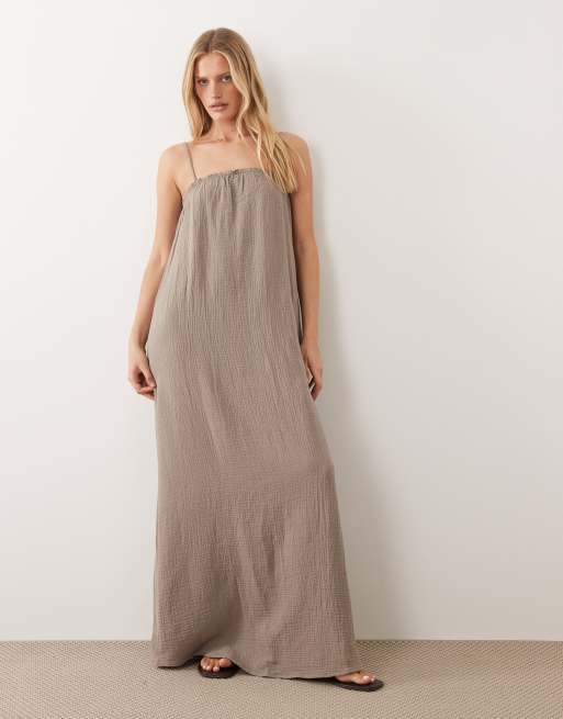 JDY – Ljusbrun, ärmlös maxiklänning i tunn väv