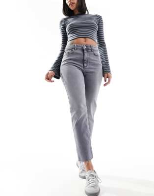 JDY – Ljusgrå raka jeans i kort design med hög midja