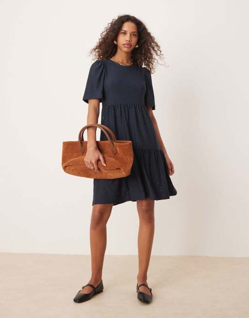 JDY – Marinblå, panelsydd miniklänning i broderie anglaise