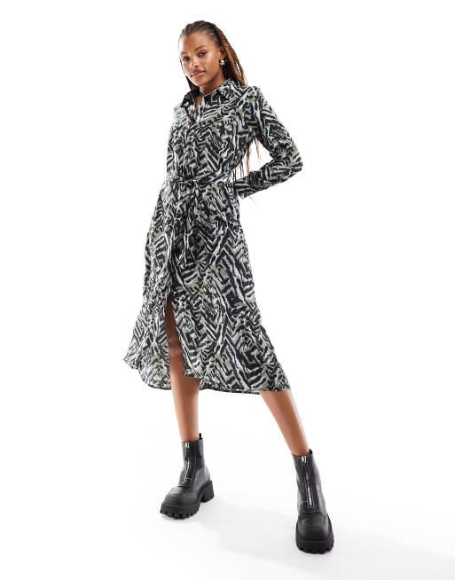 JDY – Midi-skjortklänning med skärp och abstrakt djurmönster