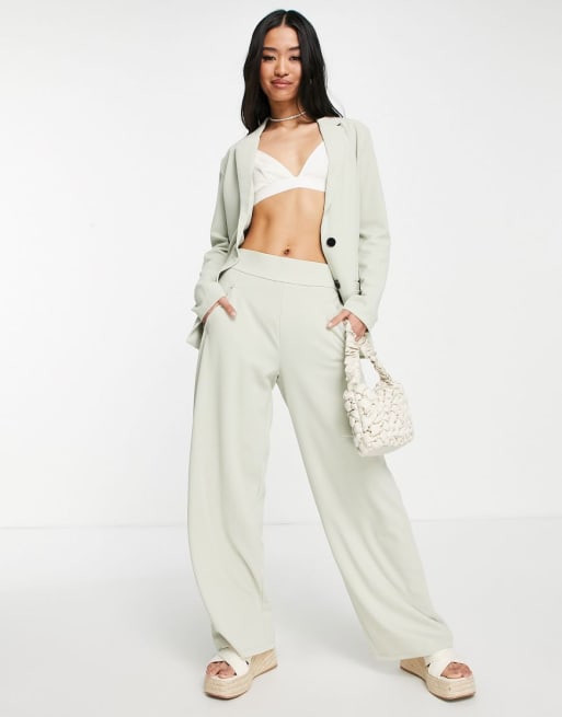 JDY – Salviagrön kostym med figursydda byxor med vida ben och kavaj i oversize