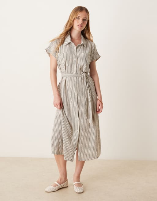 JDY – Svart, lång skjortklänning med vita kritstrecksränder och knytband i midjan