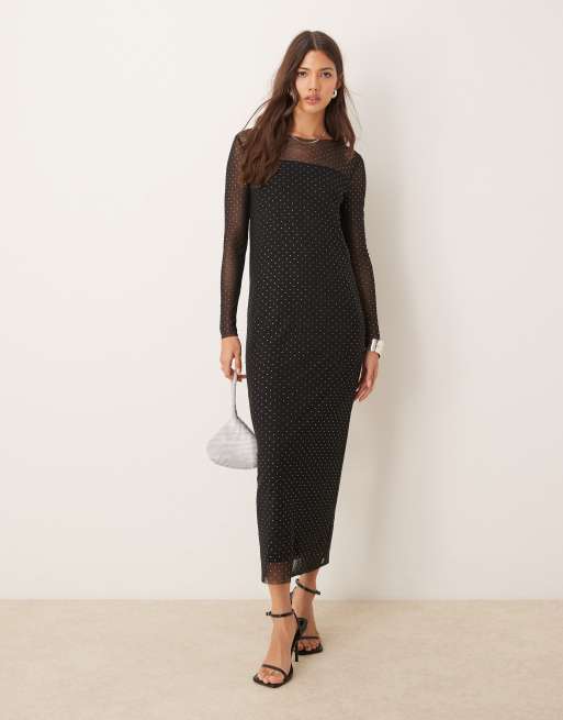 JDY – Svart, långärmad maxiklänning i mesh med nitar
