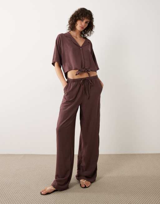 JDY – Vinröda byxor i linnemix med raka ben, del av set