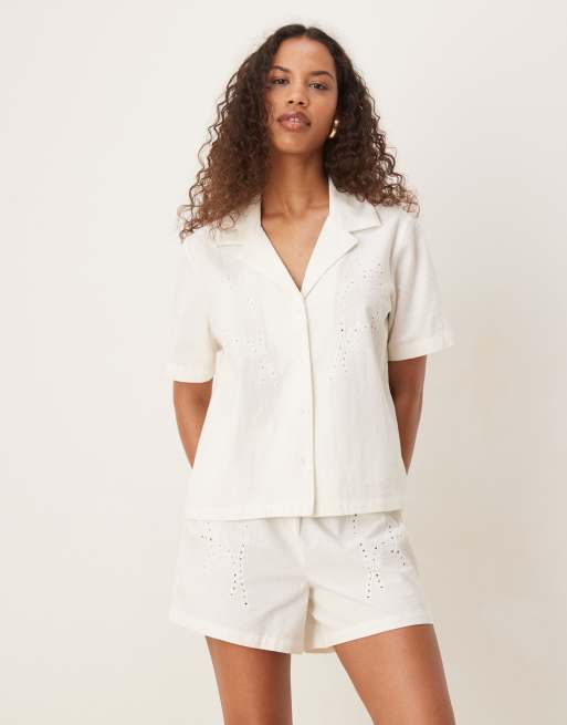 JDY – Vit, broderad, ledig skjorta, del av set