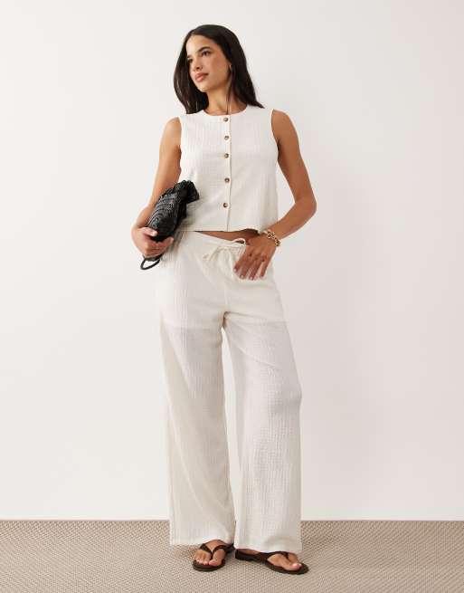 JDY – Vita, texturerade, figursydda byxor, del av set