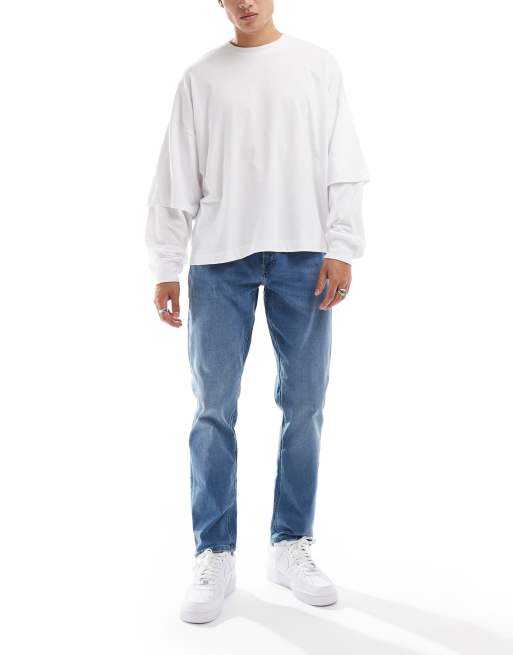 JJ Rebel – Adam – Mellanblå, avsmalnande jeans