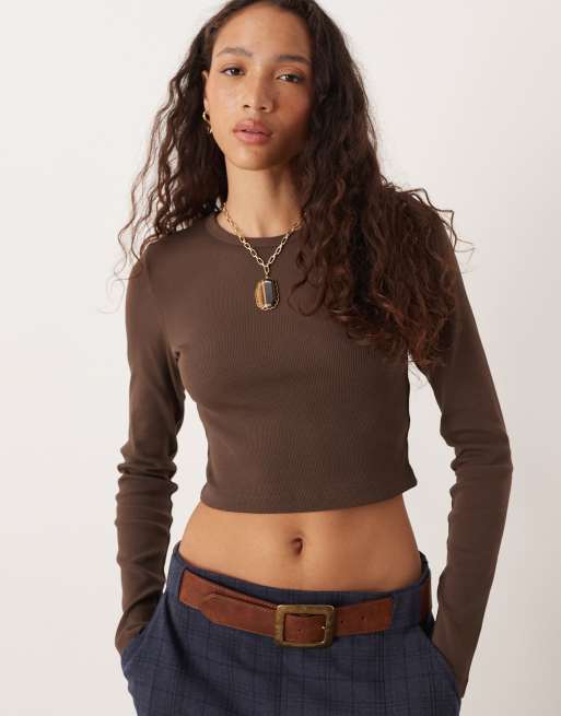 JJXX – Feline – Brun, ribbad t-shirt med långa ärmar