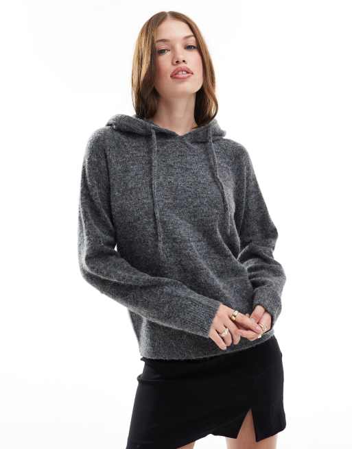 JJXX – Grå, fluffigt stickad tröja med huva