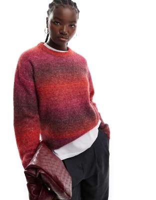 JJXX – Röd, ombréfärgad, stickad tröja i oversize modell