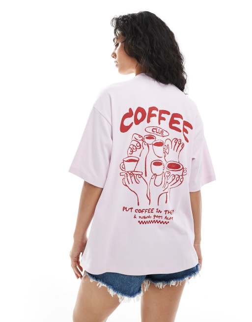 JJXX – Rosa t-shirt i oversize med "coffee club"-tryck