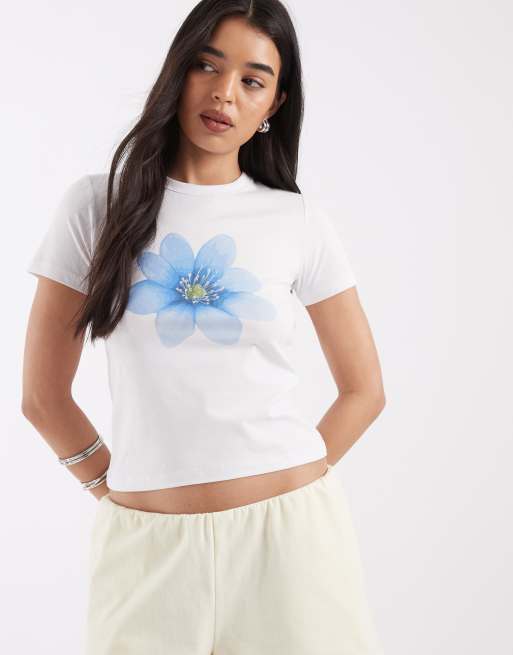 JJXX – Vit, figurnära t-shirt med blått blomtryck