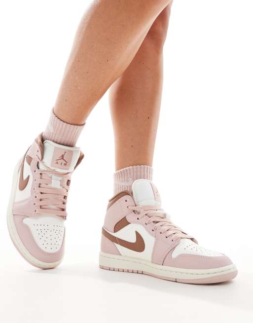 Nike – Air Jordan 1 Mid – Rosa och vita sneakers med medelhöga skaft