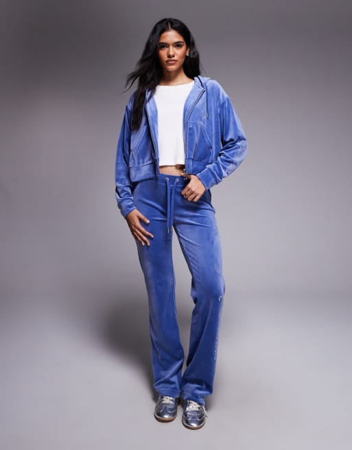 Juicy Couture – Gråblått set med huvtröja med strasslogga och dragkedja