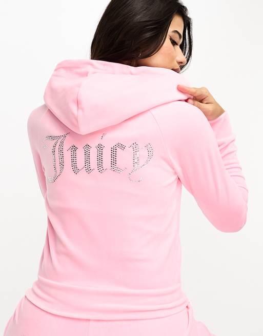 Juicy Couture – Rosa huvtröja i velour med dragkedja, del av set