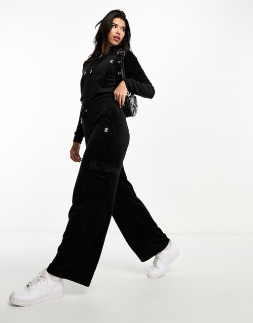 Juicy Couture – Svart set med raka mjukisbyxor och huvtröja i velour