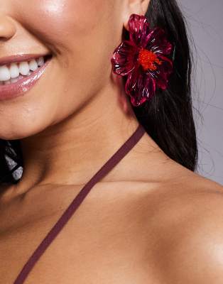 Kaiia – Fuchsiarosa stiftörhängen i harts med stora blommor, exklusivt hos ASOS