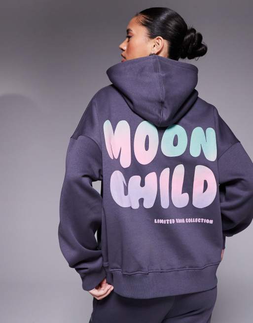 Kaiia – Mörkgrå huvtröja i bomullsmix med vågigt tryck baktill och logga, del av set