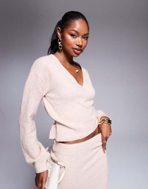 Kaiia – Rosa kofta med omlottdesign och knytning i sidan, del av set, exklusivt hos ASOS