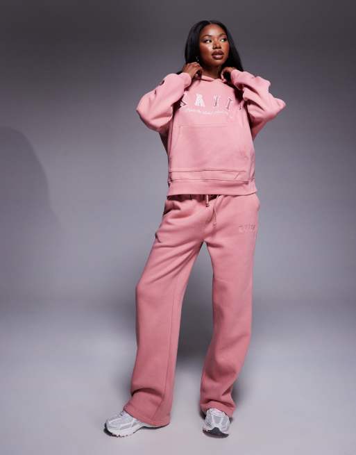 Kaiia – Rosa set i oversize med vida mjukisbyxor och huvtröja med broderad logga