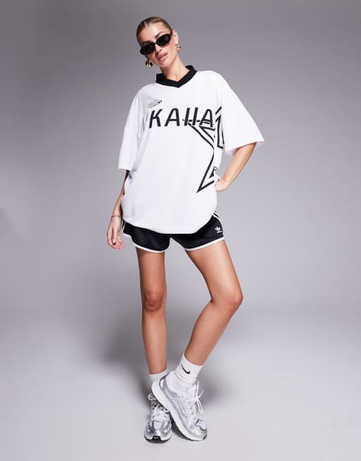 Kaiia – Sport – Vit och svart fotbollströja i jersey och oversize med stjärnlogga