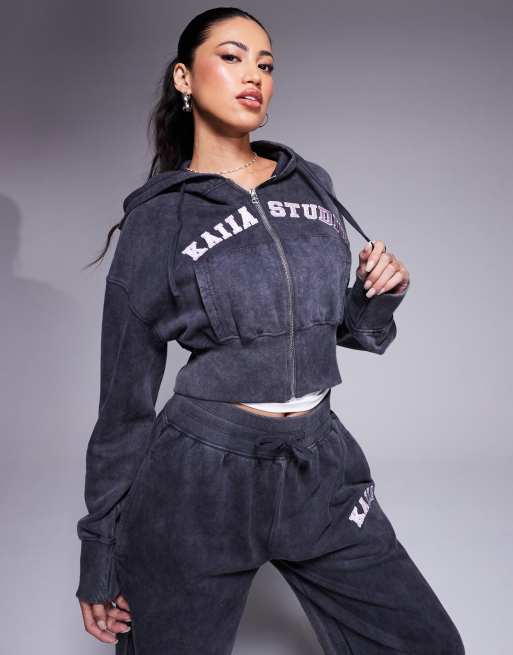 Kaiia – Studio – Blekgrå och rosa, figurnära huvtröja med dragkedja, del av set